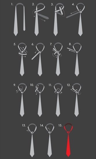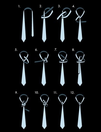 Trinity Knot的前面幾個(gè)步驟有點(diǎn)類似溫莎結(jié)的打法,只不過(guò)溫莎結(jié)是用領(lǐng)帶粗的那一頭來(lái)打,而Trinity Knot用的是領(lǐng)帶較細(xì)的那一頭來(lái)打領(lǐng)帶結(jié)。9和10兩個(gè)步驟是最關(guān)鍵的步驟,系的時(shí)候要將領(lǐng)帶面舒展整齊,不然最后的領(lǐng)帶結(jié)效果會(huì)顯得皺巴巴。