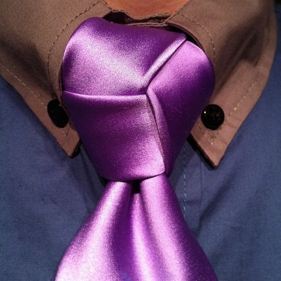 最后向大家隆重推出的是Eldredge Knot,一個(gè)非常美但是非常復(fù)雜的領(lǐng)帶結(jié)。來(lái)源大約是在08年某人在非常無(wú)聊的情況下發(fā)明的,然后他把視頻教程發(fā)到了Youtube上,于是這種領(lǐng)帶結(jié)便由此走紅。當(dāng)然,也有人說(shuō)Eldredge Knot是從Tumblr上流傳出來(lái)的,真相具體是什么,現(xiàn)在已經(jīng)不得而知了。